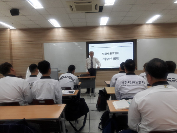 지난 26일 오전 11시부터 백석대학교(충청남도 천안시) 백석체육관에서 열린 특강에서, 최 회장은 “지도자로서 사명을 인식하고 역량을 갈고닦기를 바란다.”라고 강조했다. “지난 3년간 KTA 수장으로서 일하며 여러 가지를 느꼈다. 오늘 이 자리에선, 그 일부를 여러분과 함께하고자 한다.”라고 운을 뗀 최 회장은 차츰 열도를 높여 가며 지도자의 본분과 마음가짐 및 자세를 내세웠다. 최 회장은 “무도인은 무도인다운 삶을 살아가려고 마땅히 온 힘을 다해야 한다. 이를 위해 성실한 수련으로 실력을 갖춰야 한다.”라고 설파했다.