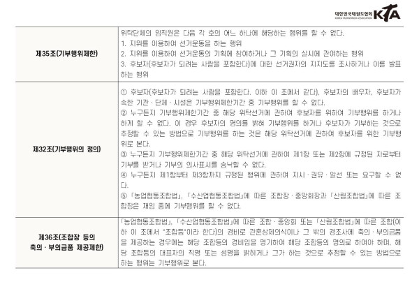 대한태권도협회 회장선거 입후보예정자를 위한 선거운동 등 관련 안내